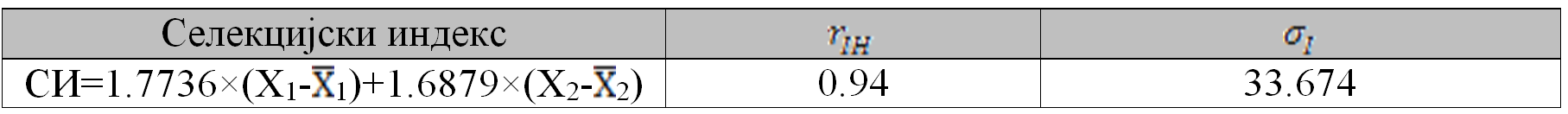 Параметри потребни за конструкцију селекцијског индекса приказани су у наредне три табеле.