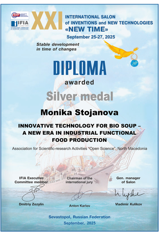 Proizvod koji je proistekao iz njene doktorske disertacije, pod nazivom „Bio-supe“, predstavljen je na XXI Međunarodnom salonu pronalazaka i novih tehnologija „Novo vreme“ održanom u Rusiji. U konkurenciji 232 inovacije mladih istraživača i pronalazača iz različitih oblasti, svrstanih u šest kategorija, „Bio-supe“ su osvojile drugo mesto – srebrnu medalju.